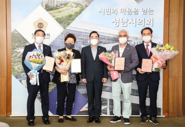 성남시의회에서는 의정연구발전 분야에 박호근 도시건설위원장, 주민참여소통 분야에 남용삼 문화복지위원장, 지역현안해결 분야에 강신철 의원, 의정활동 분야에 강현숙 의원이 주민을 위한 의정활동 공로를 인정받아 수상의 영예를 안았다.