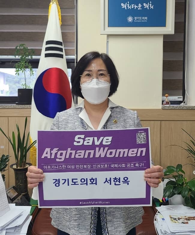 서현옥 경기도의원(더불어민주당, 평택5)이 아프가니스탄 여성의 안전보장과 인권보호를 위한 국제사회의 공조를 촉구하는 ‘세이브 아프간 위민(Save Afghan Women)’ 챌린지에 동참하였다.