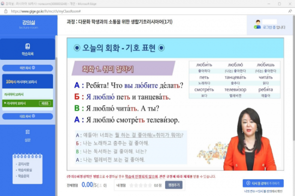 주요 교육내용은 자기소개와 수업시간, 교사와 학생 간 상호작용 등 회화표현을 비롯해 베트남 등 4개국 언어권의 교육제도 및 학교 문화를 소개하는 내용으로 총 10차시로 구성됐다.