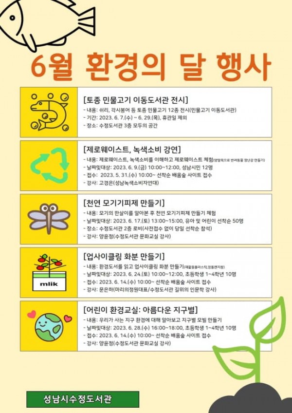 성남시수정도서관, 6월 환경의 달 기념행사 운영
