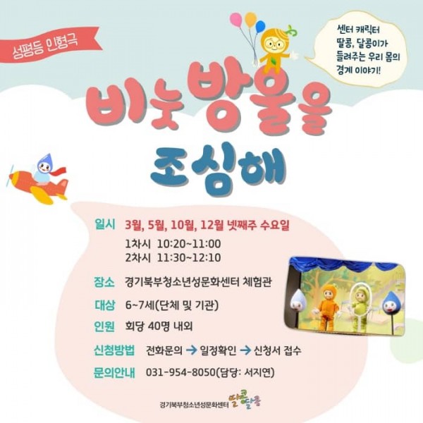 경기북부청소년성문화센터에서 진행하는 ‘비눗방울을 조심해’ 경계 존중 인형극은 아동에게 익숙한 배경과 흥미로운 내용을 설정하여 매년 교육 만족도가 높은 프로그램으로, 건강한 성 가치관을 갖게 하는 것이 목적이다.