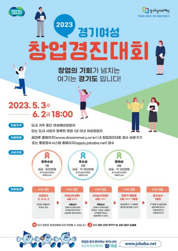 경기도가 도내 여성들의 우수한 창업 아이디어를 발굴하고 지원하기 위해 ‘2023년 경기 여성창업 경진대회’를 개최한다며, 대회 참가자를 5월 3일부터 6월 2일까지 모집한다.