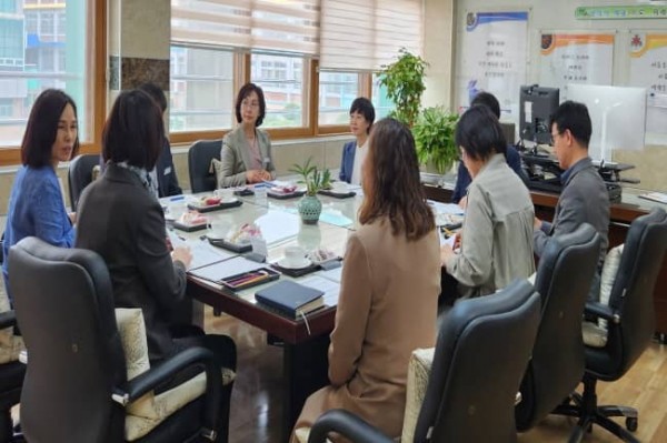 이날 방문한 약대초등학교는 구도심에 위치하고 학급 수와 학생 수가 적은 학교로, 간담회에서는 이같은 상황에 맞는 지역사회 연계 늘봄학교 운영 방안이 논의됐다.