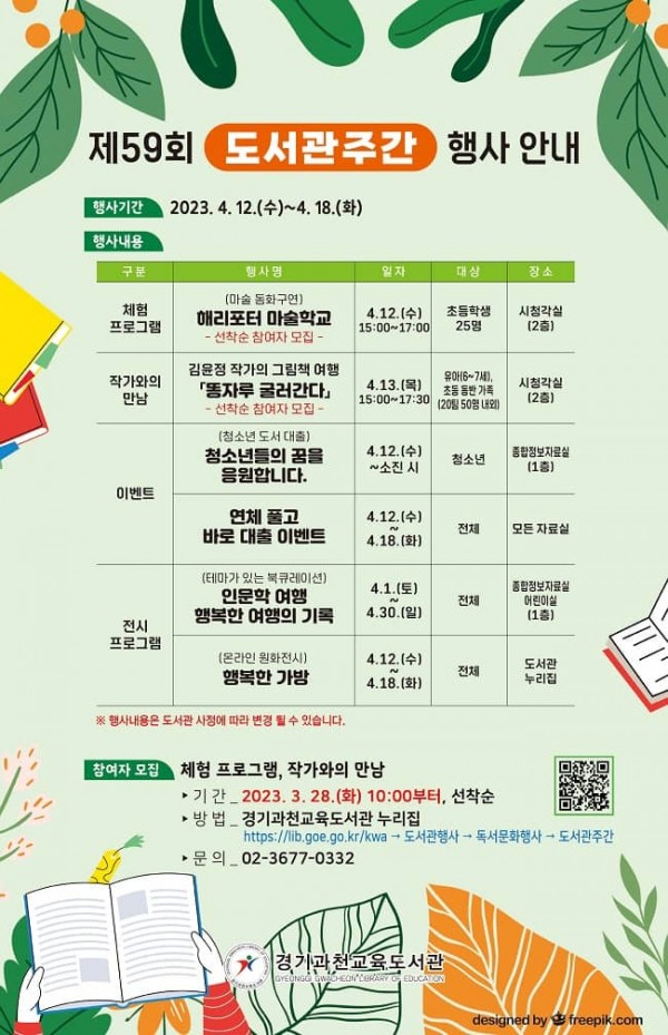 - 28일부터 과천교육도서관 누리집에서 참여자 선착순 모집