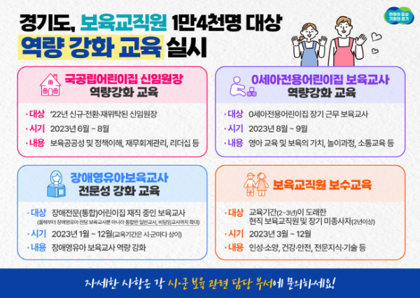 경기도, 보육 교직원 역량 강화 위해 4개 교육사업 진행. 1만 4천 명 대상