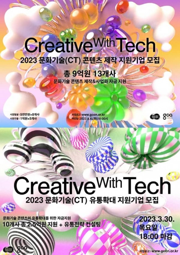 ○ 경기도, 문화기술(CT) 콘텐츠 분야 주요 2023년 지원사업 모집공고 개시