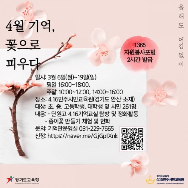 4.16민주시민교육원,‘4월 기억, 꽃으로 피우다’ 프로그램 참가자 모집 > 교육/문화