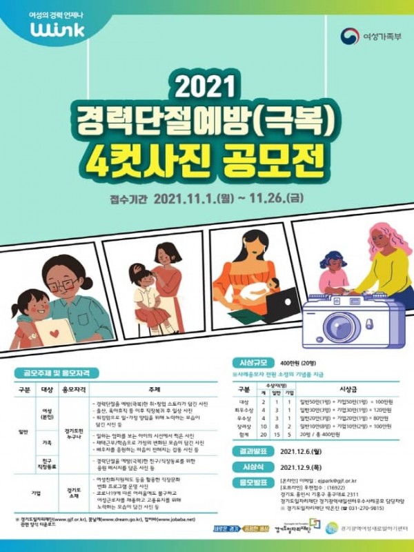 ○ 경기도민 및 도내 기업 대상, 경력단절예방(극복) 인식개선 4컷사진 공모전 실시