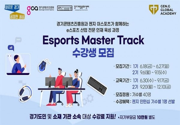 경기도가 6일부터 15일까지 이(e)스포츠 산업 전문 실무자 양성을 위한 ‘e스포츠 산업 인재 육성 프로그램’ 2기 수강생을 모집한다.