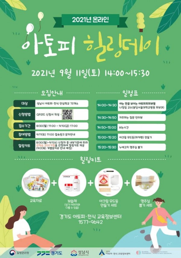성남시(시장 은수미)는 오는 9월 11일 오후 2시~3시 30분 ‘온라인 아토피 힐링데이’를 운영한다.