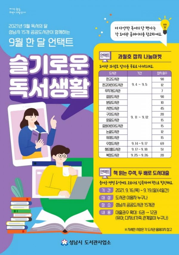 ‘슬기로운 독서생활’ 성남 15곳 공공도서관 언택트 행사 풍성