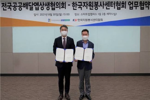 30일 경기도주식회사에 따르면, 전국공공배달앱상생협의회는 이날 성남 판교 스타트업캠퍼스에서 한국자원봉사센터협회와 '슬로우캠페인' 활성화를 위한 업무협약을 체결했다고 밝혔다.