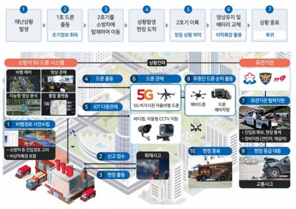 해당 드론은 5G 기술이 적용돼 비가시권에서도 원격 운용이 가능하다.