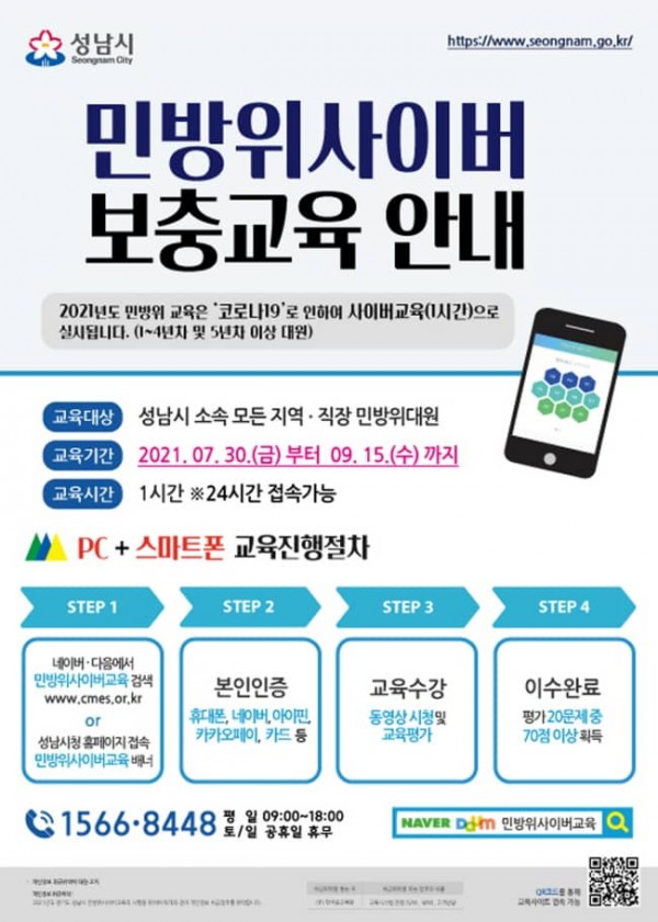 성남시 오는 9월 15일까지 민방위 사이버 보충 교육