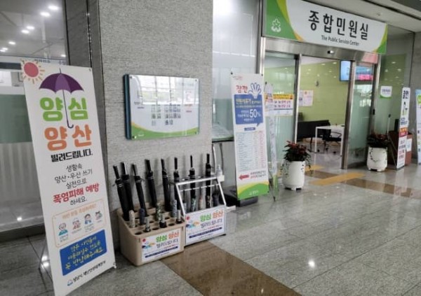 시는 5월 24일부터 ‘양산쓰기 운동’으로 50개 동 행정복지센터에서 이미 양산 무료 대여소를 설치하여 운영 중이다. 이번에 시·구청 민원실 앞과 환승지하철역인 이매역사 고객지원실 앞에 ‘양심 양산 대여소’를 추가 설치하여 운영을 확대하는 것이다.