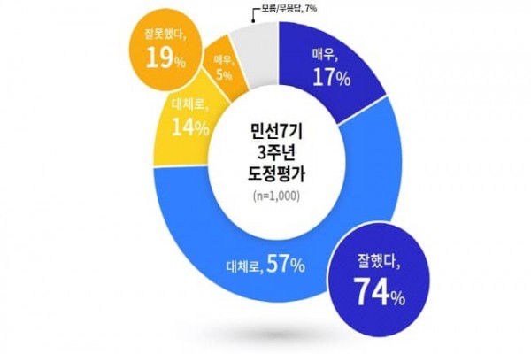 경기도민 4명 중 3명이 출범 3년을 맞은 민선 7기 경기도정에 ‘잘했다’고 평가했다는 조사 결과가 나왔다.