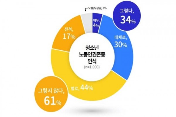 - 우리사회에서 청소년 노동인권 ‘존중되지 않는다’ 61%