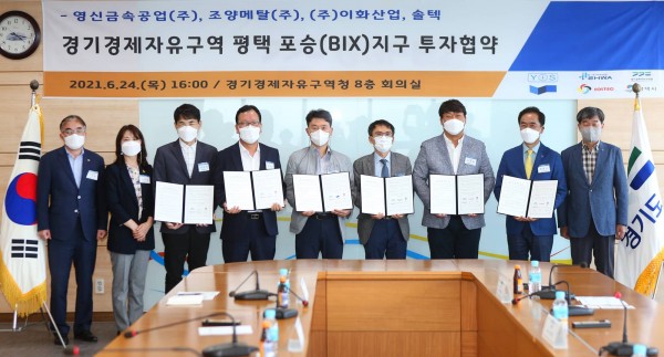 경기경제청은 지난 24일 오후 4시 8층 회의실에서 영신금속(주), 조양메탈(주), ㈜이화산업, 솔텍, 평택시와 평택 포승(BIX)지구 산업시설 용지 입주를 위한 투자협약을 체결했다.