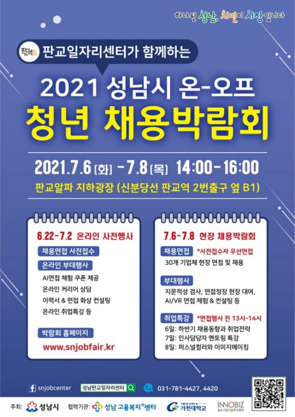 성남시(시장 은수미)는 6월 22일~7월 8일 온·오프라인 ‘청년채용박람회’를 개최한다.
