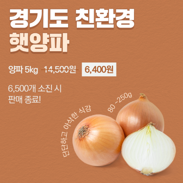 - 친환경 양파 5kg이 6,400원에 무료 배송까지(6,500박스 한정)