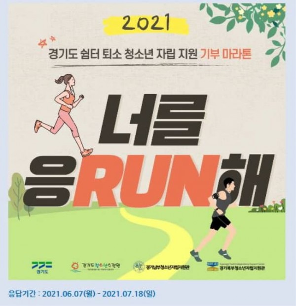 경기도청소년수련원이 도내 쉼터 퇴소 청소년을 지원하기 위해 비대면 기부 마라톤 ‘너를 응런(RUN)해’를 개최한다.