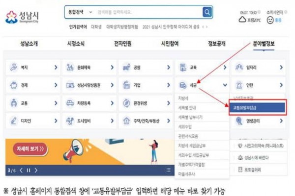 성남시, 전국 첫 교통유발부담금 온라인 조회 창구 개설