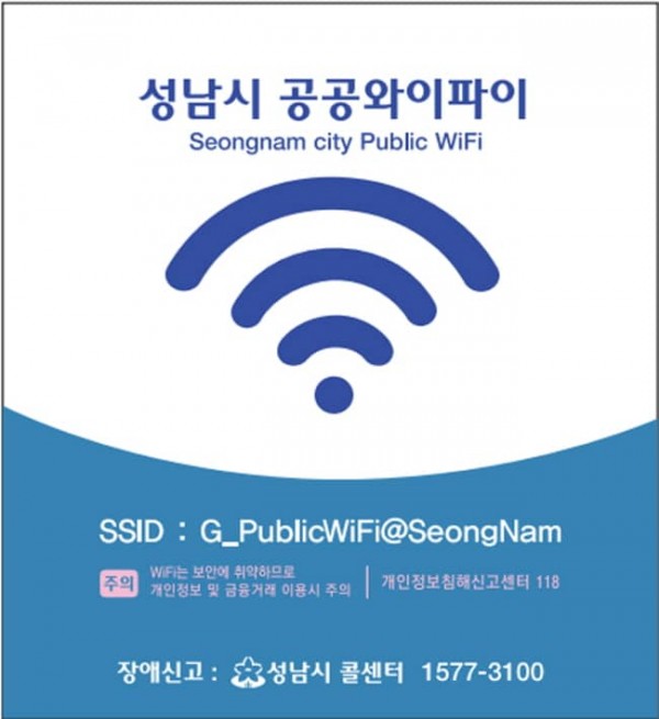 성남시 공공와이파이를 이용하려면 스마트폰의 Wi-Fi 설정에서‘G_PublicWiFi@SeongNam’이나 ‘G_PublicWiFi_Secure@SeongNam’을 선택하면 된다.