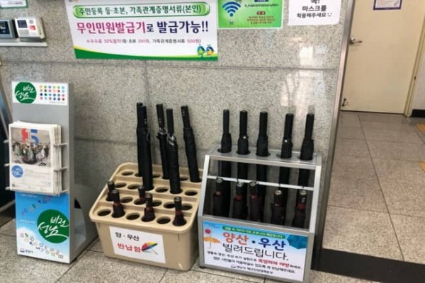 시는 각 동에 성남시 마크가 찍힌 양산을 50개씩 모두 2500개 비치해 지난달 24일부터 무료로 빌려주고 있다.