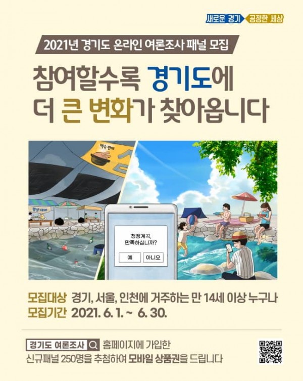 경기도가 6월 30일까지 ‘경기도 온라인 여론조사 신규 패널’을 모집한다.