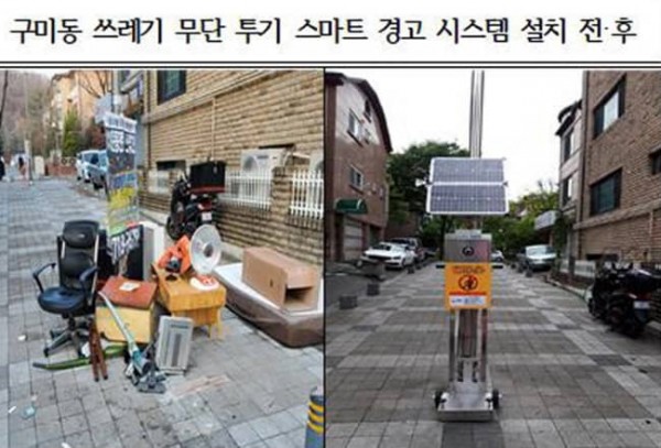 성남시 자원순환과장은 “경고성 안내 방송은 쓰레기를 몰래 버리려던 이들의 심리를 위축시켜 무단투기 근절 효과를 낸다”면서 “깨끗해진 동네에 대한 지역주민들의 호응과 추가설치 요청에 스마트 경고 시스템을 확대했다”고 말했다.