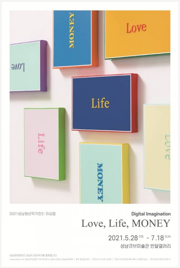 성남문화재단(대표이사 노재천)이 지역의 청년작가를 발굴·지원하는 ‘2021 성남청년작가전’의 두 번째 전시로 이상엽 작가의 <Digital Imagination: Love, Life, MONEY>를 오는 5월 28일(금)부터 7월 18일(일)까지 성남큐브미술관 반달갤러리에서 개최한다.