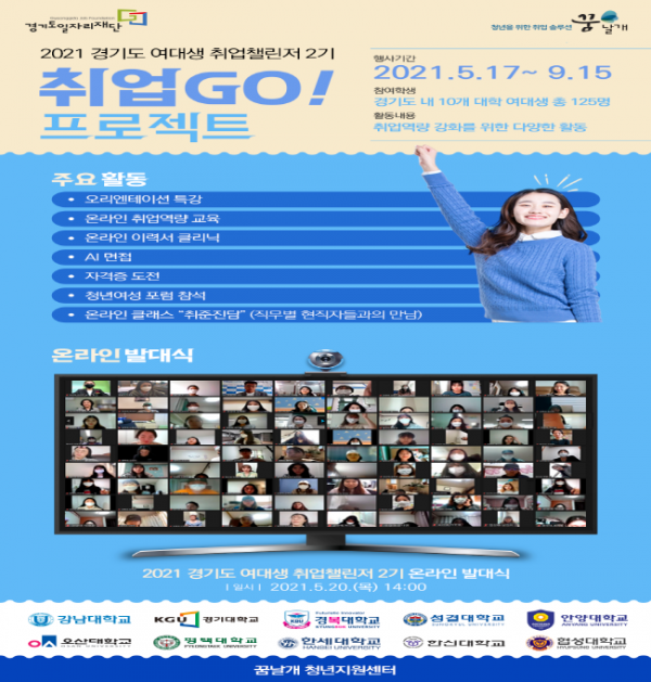 경기도와 경기도일자리재단은 지난 20일 도내 여대생들에게 다양한 취업지원 서비스를 제공하는 ‘경기도 여대생 취업챌린저 2기’ 온라인 발대식을 개최했다.