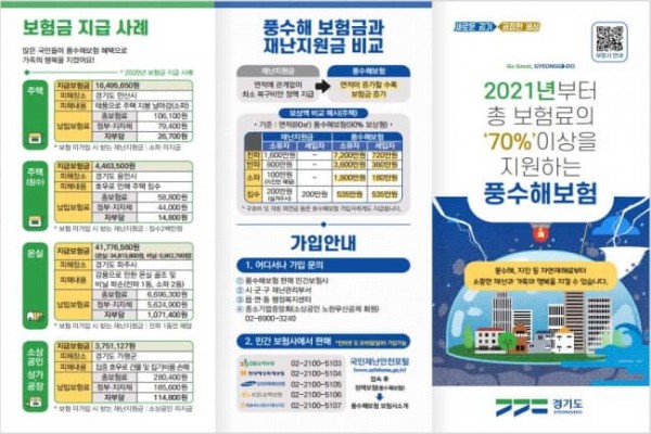 경기도는 6일 태풍이나 집중호우, 강풍 등 예기치 못한 자연재해로 인해 발생하는 재산 피해에 대비할 수 있는 풍수해보험 가입을 적극 권장했다.