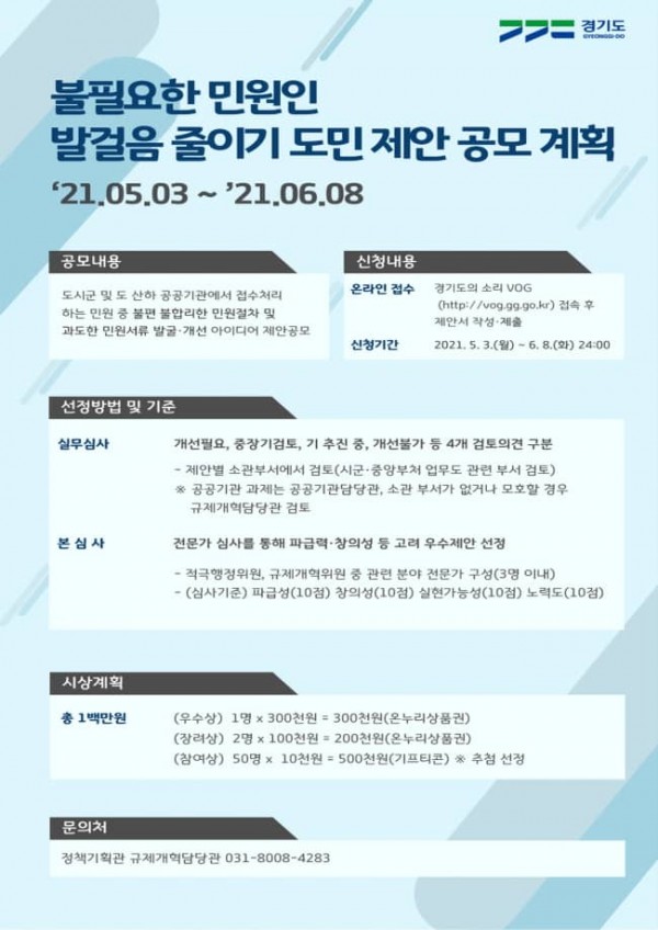 - 6월 8일까지 경기도의 소리(https://vog.gg.go.kr)에서 접수