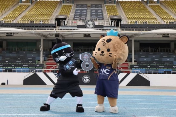 성남FC 마스코트 까오가 K리그 마스코트 반장선거 순위 도약을 위해 서울이랜드FC 레울과 탄천 동맹을 형성했다.