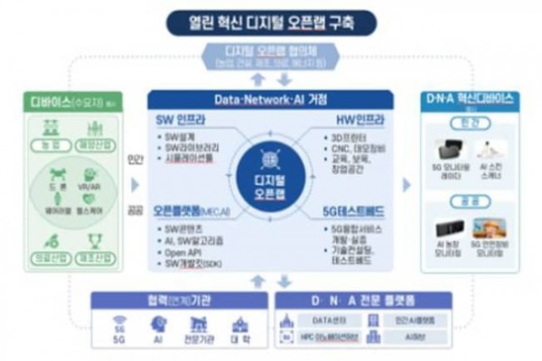 디지털 오픈랩은 5G 시험망, MEC 플랫폼, 5G 테스트베드 등을 구축해 다양한 5G 개발 환경을 제공할 뿐만 아니라 AI 플랫폼 및 기술개발 등 D·N·A 기술 관련 인프라와 컨설팅, 기술개발을 지원한다. 이외에도 범부처·지자체 등과 함께 D·N·A 관련 시설과 지원사업을 연계하고, 다양한 사회문제 해결을 위한 공공 융합 디바이스도 개발할 예정이다.