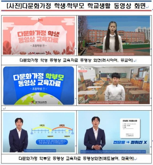 경기도교육청(교육감 이재정)이 다문화가정 학생과 학부모의 학교생활 적응을 돕기 위해 영상자료를 개발・제작해 도내 초등학교와 일반에 제공했다고 13일 밝혔다.