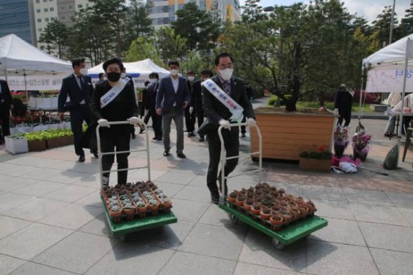 성남시의회(의장 윤창근)는 13일 성남시의회 앞에서 진행된 성남 화훼 드라이브스루 직거래 장터에서 화훼 구매에 동참하고 격려하였다.