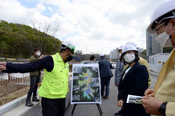 은 시장은 오는 5월 말 5903가구 입주를 앞둔 이곳 판교대장 도시개발사업 지구의 각종 기반시설 시공 상태를 확인하고, 입주 지원 상황을 살폈다.