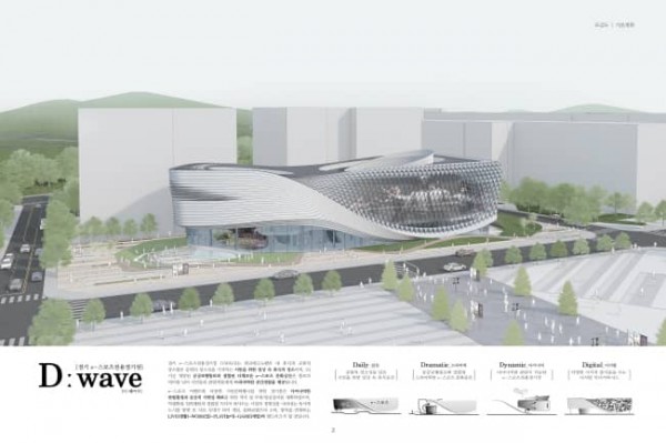 시는 설계작 공모 기간(2020.12.11~3.8)에 응모한 7개 업체의 설계작 중에서 다양한 행사 공간 구성, 정체성, 상징성 등에서 가장 높은 종합점수를 얻은 ㈜디엔비파트너스 건축사 사무소의 설계작 ‘D:wave(디:웨이브)’를 당선작으로 선정했다고 31일 밝혔다.