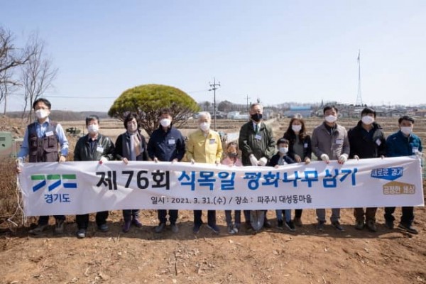 제76회 식목일과 판문점 선언 3주년을 앞두고 경기도가 31일 오전 대한민국 최북단 DMZ에 자리 잡은 파주시 군내면 대성동 마을에서 한반도 평화정착을 기원하는 ‘평화나무심기’ 행사를 개최했다.