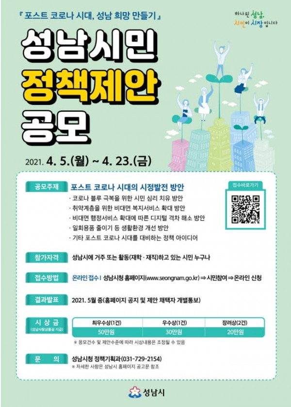 성남시 ‘포스트 코로나 시대, 희망 만들기’ 정책 공모