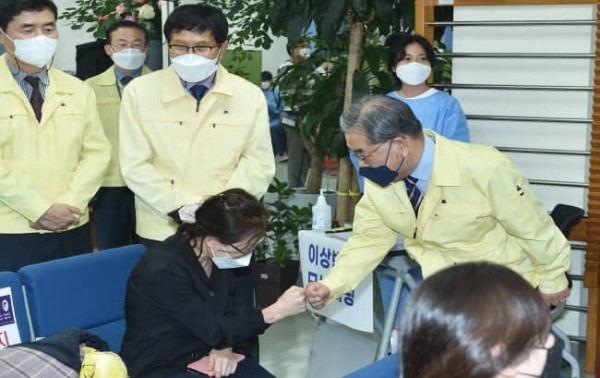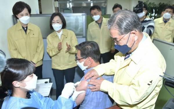 이 교육감은 접종에 따른 건강상 이상은 없는지 백신접종 대상자인 성남 혜은학교 교직원들을 직접 확인하며 앞으로 예의 주시하도록 당부한 뒤 교직원과 보건소 의료진 관계자의 노고를 격려했다.