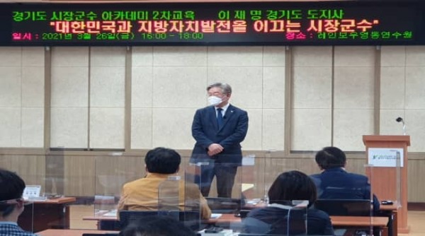 이번 아카데미는, 코로나19 및 4차산업혁명을 비롯한 급변하는 대내외 환경속에서 주민을 위한 혁신적 행정서비스를 제공함은 물론, 주민중심의 지방자치 실현을 위한 자치단체장들의 역할을 재조명하고, 새로운 지역창조의 경영자로 거듭나고자 경기도내 31개 시장·군수들의 자발적 학습공간을 마련하게 되었다.