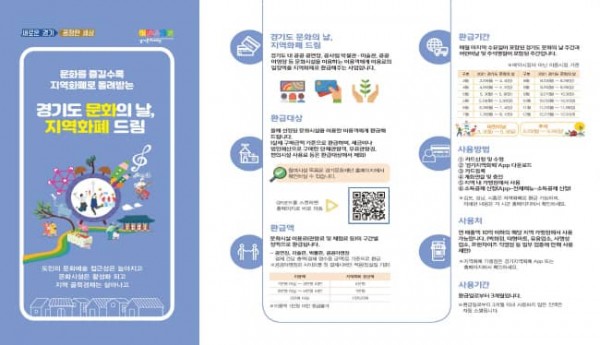 김종석 도 문화체육관광국장은 “코로나19 장기화로 지친 도민들이 문화예술을 접하면서 행복지수를 높이기를 기대한다”며 “문화를 즐길수록 골목상권까지 살릴 수 있는 경기도 문화의 날, 지역화폐 드림 사업에 많은 관심과 참여를 바란다”고 말했다.