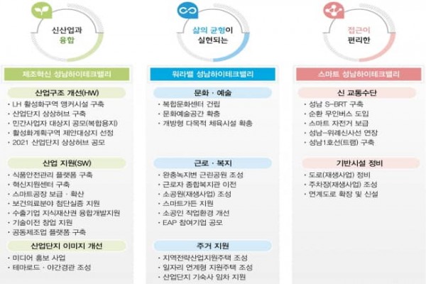 성남시(시장 은수미)는 준공한 지 45년 된 151만㎡ 규모 성남하이테크밸리 재생사업지구의 경쟁력을 강화하기 위한 종합발전계획을 수립했다고 29일 밝혔다.
