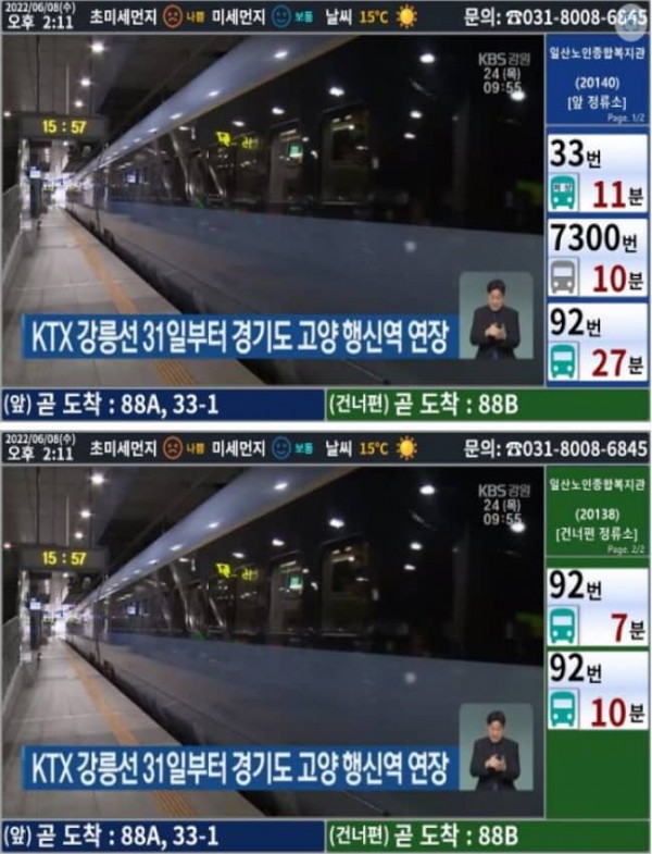 복지관 내에 이미 설치돼 있는 IPTV 화면에 복지관의 ‘앞 버스정류소’와 ‘건너편 버스정류소’의 실시간 버스 도착 예정 시간과 날씨, 미세먼지 상태 등의 각종 정보를 실시간으로 보여주는 것이 골자다.