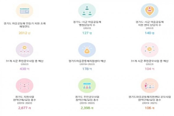 - 경기도 마을공동체 사업 및 주민 현황, 행정역량, 지원센터, 공간 정보 공개