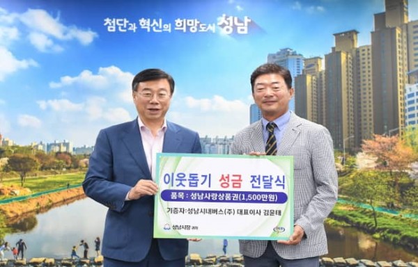 성남시내버스 1500만원, 대원버스 1200만원 상당 상품권 기탁