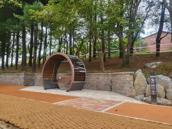 황톳길 곳곳엔 그늘막, 그네 의자, 등의자, 4인용 야외 탁자 등의 휴게시설을 설치했다.